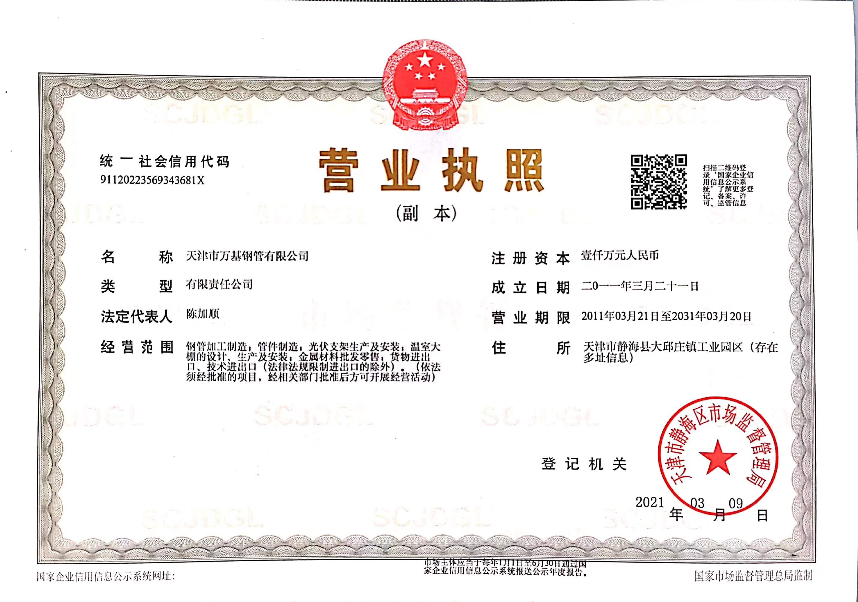 天津市万基钢管有限公司位于京、津、冀三角地带,交通方便。公司技术力量雄厚,设备精良,工艺先进,检测手段齐全,业务辐射各地,优质低价的产品深受众多用户的信赖。